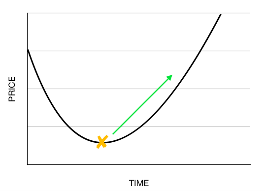 This is where a market surprises most. While the majority of buyers are waiting for the bottom, others with different expectations of the low point have begun purchasing again. This brings the decline to an eventual halt. Market prices begin to pick up quickly as more buyers re-enter the market. In this phase, many individuals begin buying in fear of missing a softened market. This effect ripples through the market and causes rapid price growth. As you can see, prices are already on their way back up and the bottom of the market can only be seen in hindsight.